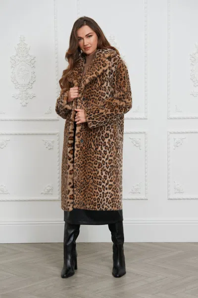 Women's Neutrals Loretta Longline Luxe Faux Fur Coat Leopard In Brown