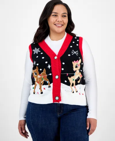 Trendy Plus Rudolf V-neck Button-front Vest In Black