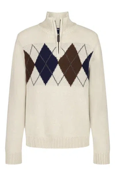 Kids' Argyle Quarter Zip Pullover Sweater In White