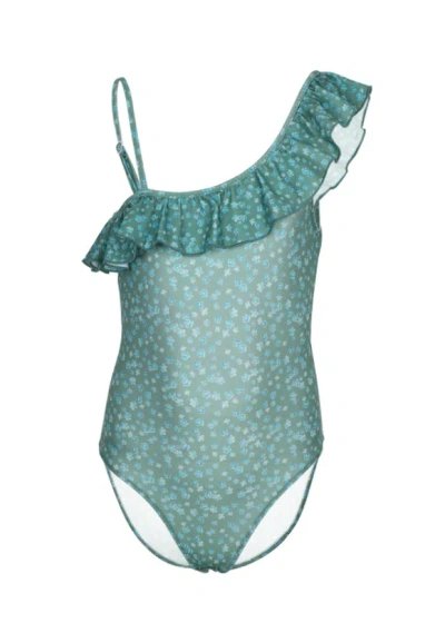 Girls One Piece Kaki Flowers In Blue
