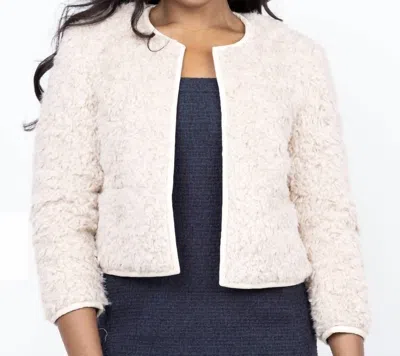Faux Fur Collarless Jacket In Latte In Multi