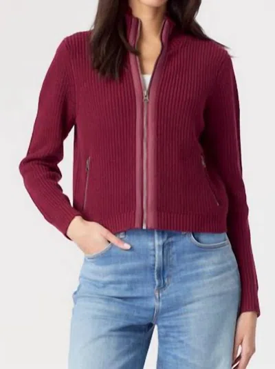 Nylon Trim Zip Front Shaker Cardigan In Bordeaux In Burgundy