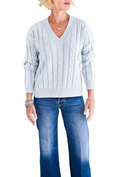 V-neck Cotton Sweater In Chambray In Blue