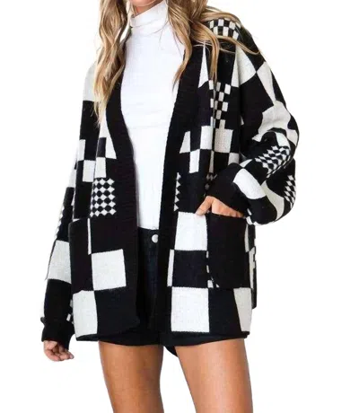 Checkered Color Block Open Midi Sweater With Pockets In Black