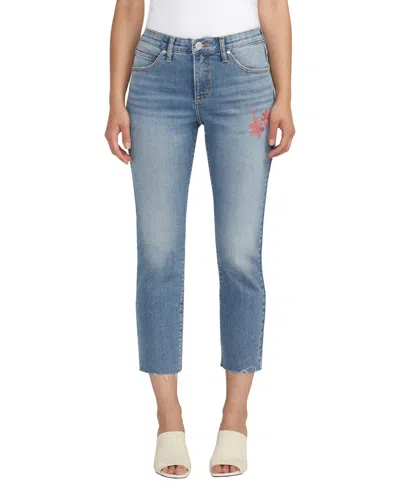 Mid Rise Embroidered Ruby Straight Leg Jeans In Essex Blue