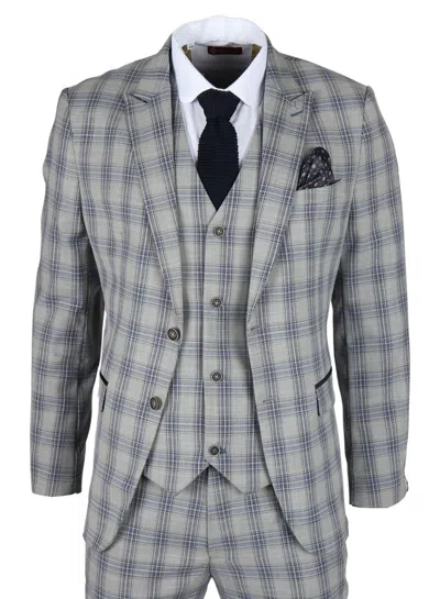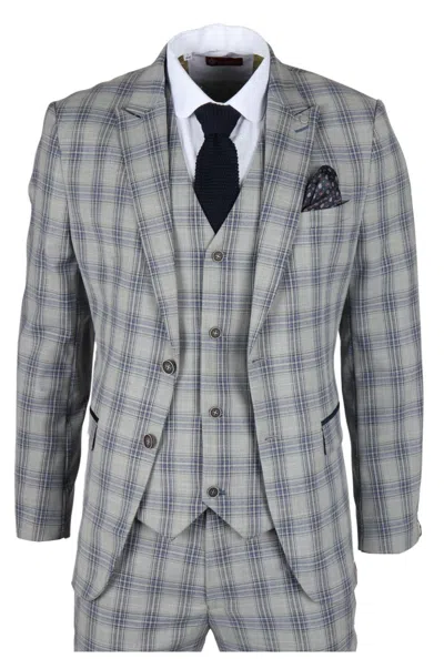 Knight 3 Piece Checked Suit In Grey