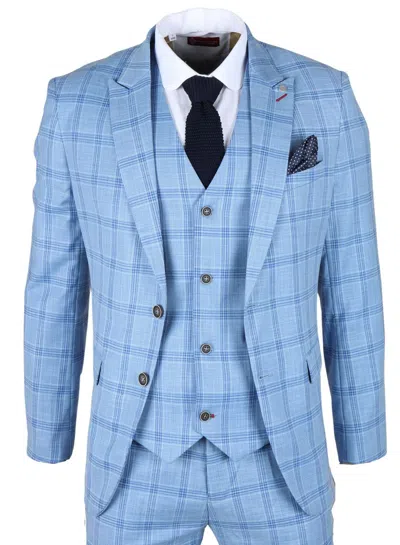 Gisborne - 3 Piece Checked Suit In Blue