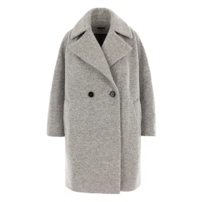 Women's Neutrals Oversized Wool Coat In Taupe – Double-breasted Mid-length Design In Gray