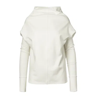 Women's White Sculptural Turtleneck Top In Ponte Di Roma