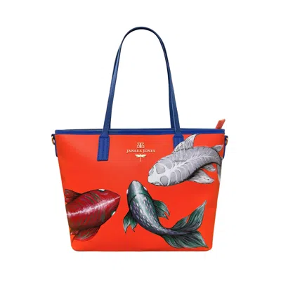 Women's Koi Fish Hand Painted Orange Tote Bag