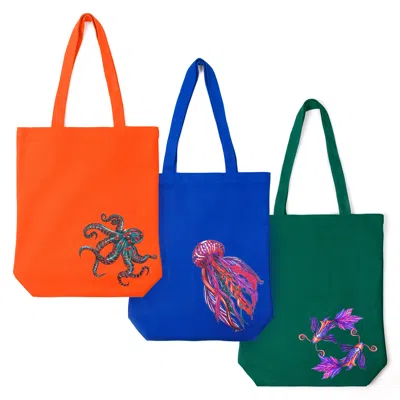 Women's Ocean Dreams Set Of Three Tote Bag In Blue/gray/green/orange/pink/purple