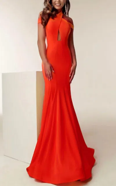Crisscrossed Bodice High Neck Mermaid Gown In Red