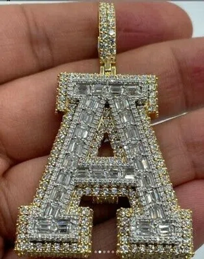 Pre-owned 3.2 Ct Men's Baguette Simulated Diamond Any 1 Letter Custom Pendant 925 Silver