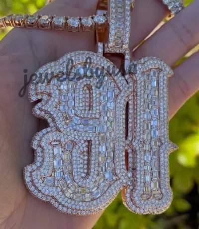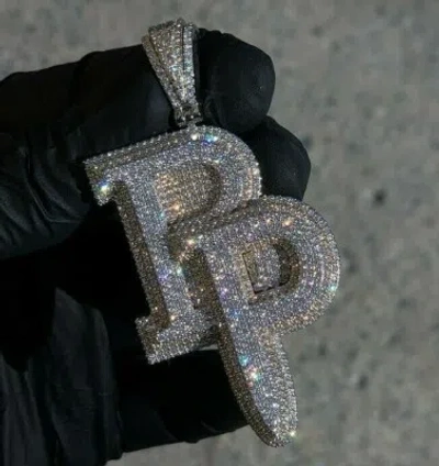 Pre-owned 5ct Pass Tester Moissanite Men's Custom Name Numberlogo Pendant 925 Silver In White