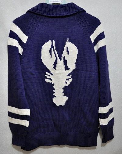 Pre-owned J. Crew Lobster Sweater-jacket Full Zip Knit Indigo Blue Medium An602 '20 In Raw Indigo/blue With Purple Hue