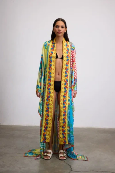 Psychedelic Printed Blushwave Short Kimono In Multi