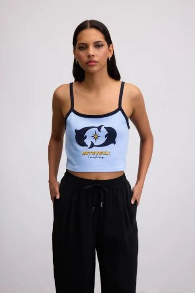 Nami Dolphin Graphic Crop Tank Top In Blue