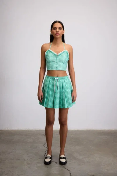 Sweetheart Gingham Crop Bustier Top With Lace Trim In Green