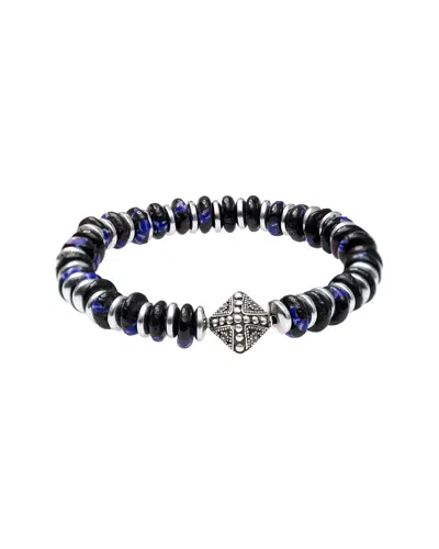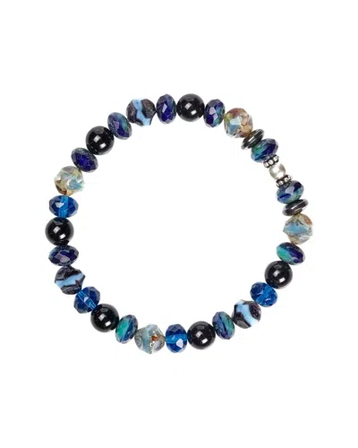 Dell Arte Silver Black Onyx Bohemian Glass Stretch Bracelet