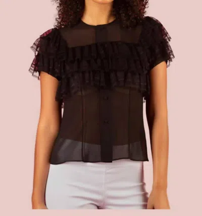 Chiffon Clover Blouse With Tulle Ruffle In Black