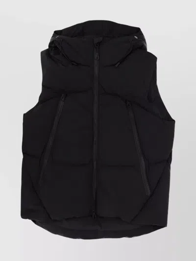 Hooded Sleeveless Quilted Jacket Pockets In Black