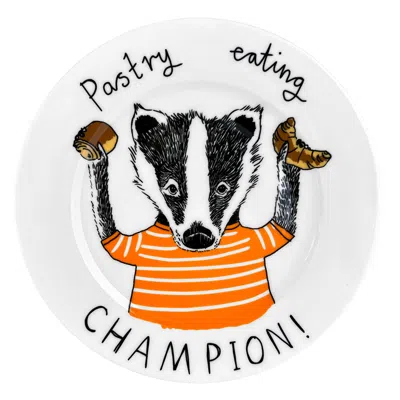 'pastry Eating Champion!' Side Plate In Orange