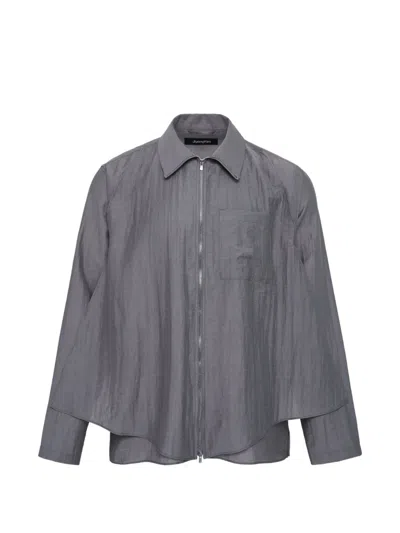 Layered Zip-up Shirt In Blue