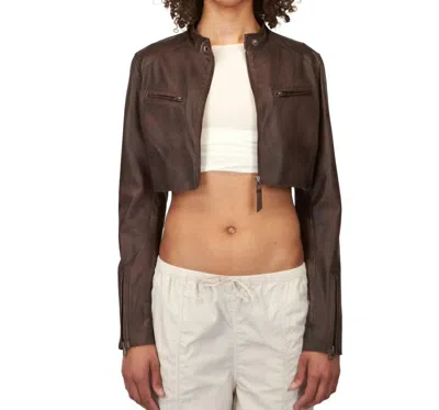 Cropped Vespa Leather Jacket In Bark In Brown