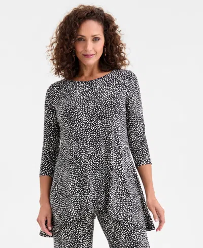 Women's Printed 3/4-sleeve Swing Knit Top, Macy's Exclusive In Black
