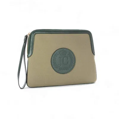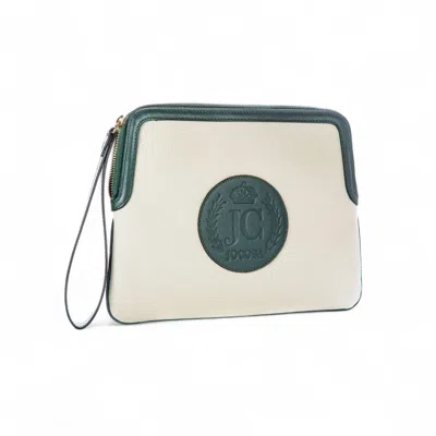 Women's Green / White Clutch Bag Ivory Canvas Green Khaki In Multi