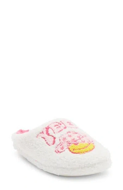 Yee Haw Winky Smiley Faux Shearling Clog In White
