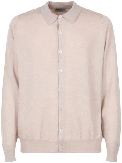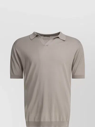 Wool Polo Shirt Long Sleeves Ribbed Cuffs In Gray