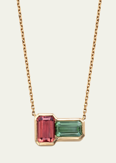Women's Heart 14k Gold Rose Quartz And Tourmaline Pendant Necklace In Red