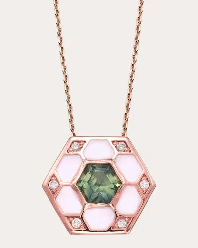 Women's Pod 14k Gold Enamel Sapphire And Diamond Pendant Necklace In Green