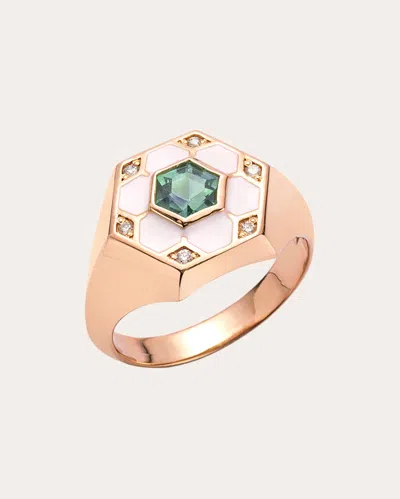 Women's Pod 14k Gold Enamel Green Sapphire And Diamond Signet Ring