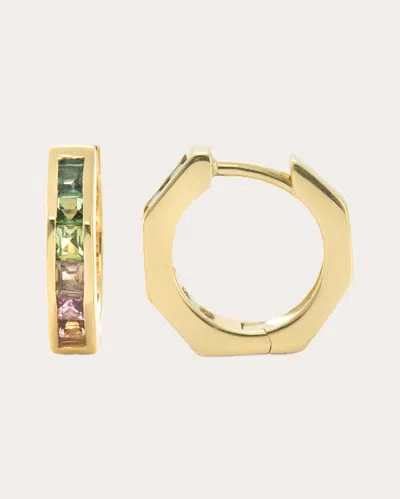 Women's Mini Otto 14k Gold Rainbow Tourmaline Hoop Earrings