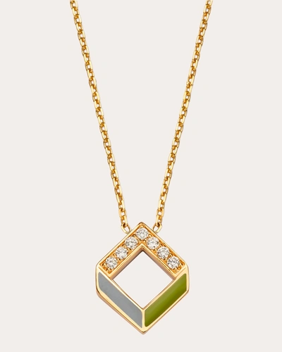 Women's Chevron 14k Gold Enamel And Diamond Pendant Necklace In Green