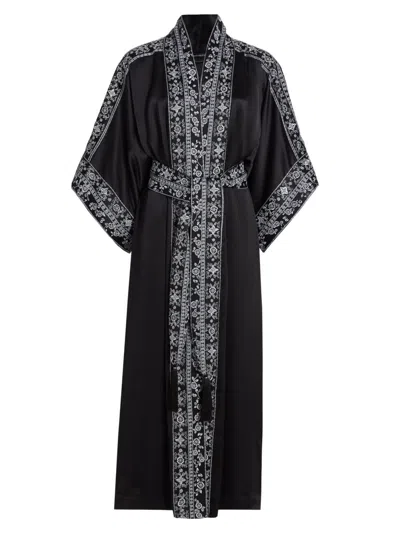 Women's Nouveau Couture Embroidered Silk Robe In Green