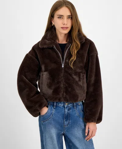 Juniors' Faux-fur Bomber Jacket In Brown