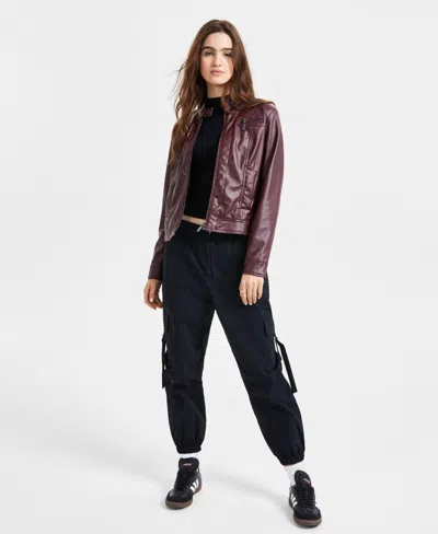 Juniors' Faux-fur-lined Moto Jacket, Created For Macy's In Walnut
