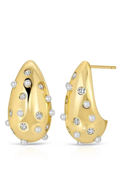 Women's Vivian Pearl Waterdrop Stud Earings In Gold In Brown