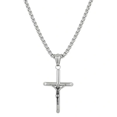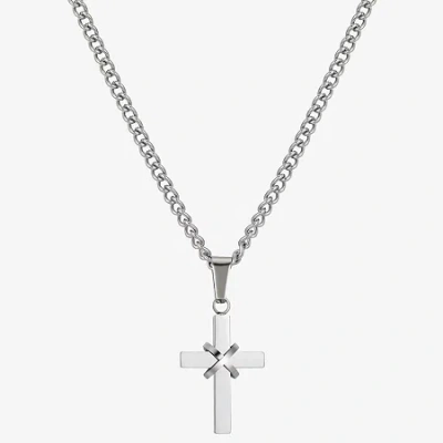 Men's Jewelry Stainless Steel 24 Inch Link Cross Pendant Necklace In Metallic