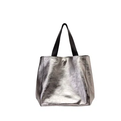 Women's Slouchy Tote Bag - Silver Soft Leather- Large Size