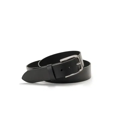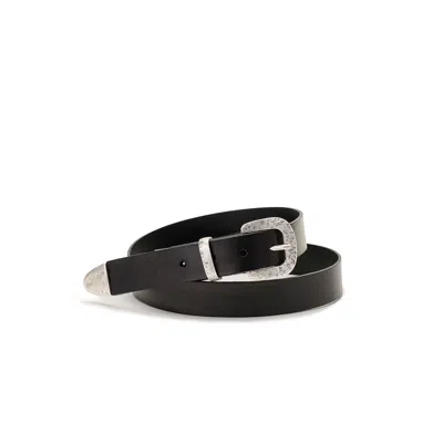 Men's Black Leather Belt With Silver Buckle And Metal Tip
