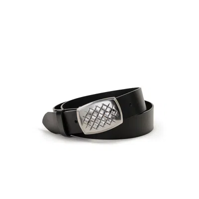 Men's Black Leather Belt Silver Buckle-lattice