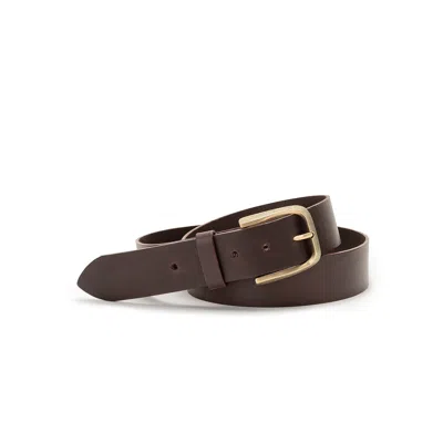 Men's Brown Leather Belt - Classic Textured Gold Buckle