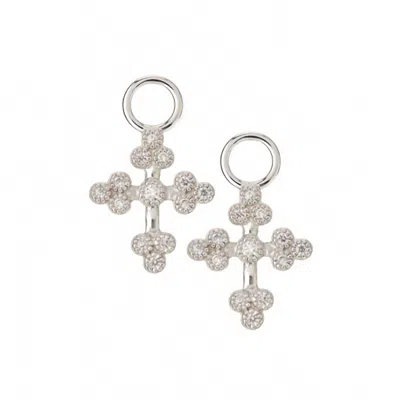 Women's Cross Heart Diamond Earring Charms In Silver In Metallic