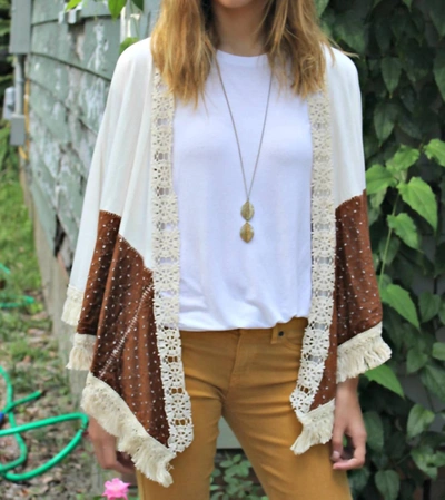 Duster With Laser Cut Suede And Fringe Details In Ivory/brown