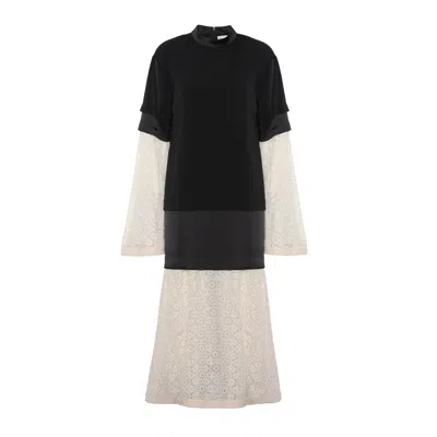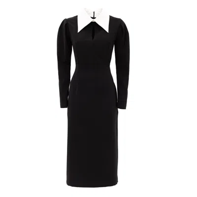 Women's Black / White Long Sleeve Formal Midi Dress – Black