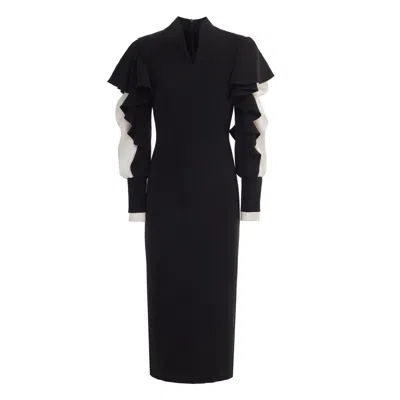 Women's Black Occasion Midi Dress With Ruffled Sleeves